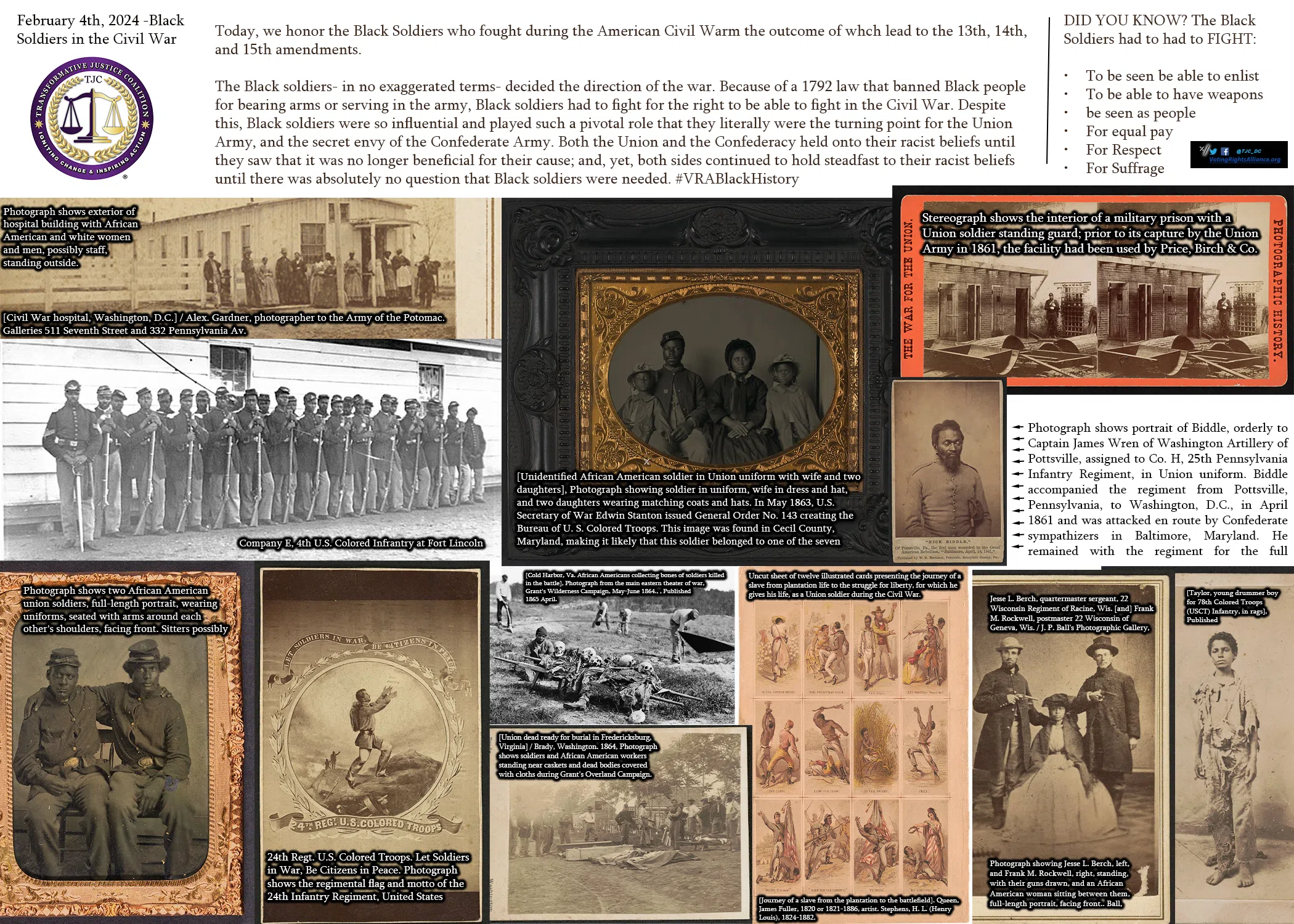 Visit https://myemail.constantcontact.com/Reminder–Today-we-honored-the-Black-Soldiers-Who-Fought-in-the-Civil-War–VRABlackHistory-2024.html?soid=1122865384673&aid=aVwD-k02LDw or https://votingrightsalliance.org/ to read the full series.