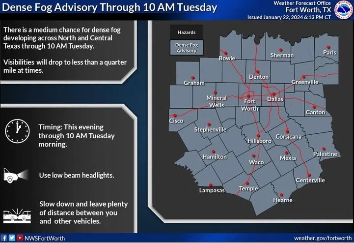 National Weather Service…DENSE FOG ADVISORY IN EFFECT UNTIL 10 AM CST TUESDAY…* WHAT…Visibility one quarter mile or less in dense fog.* WHERE…Portions of north central, northea...