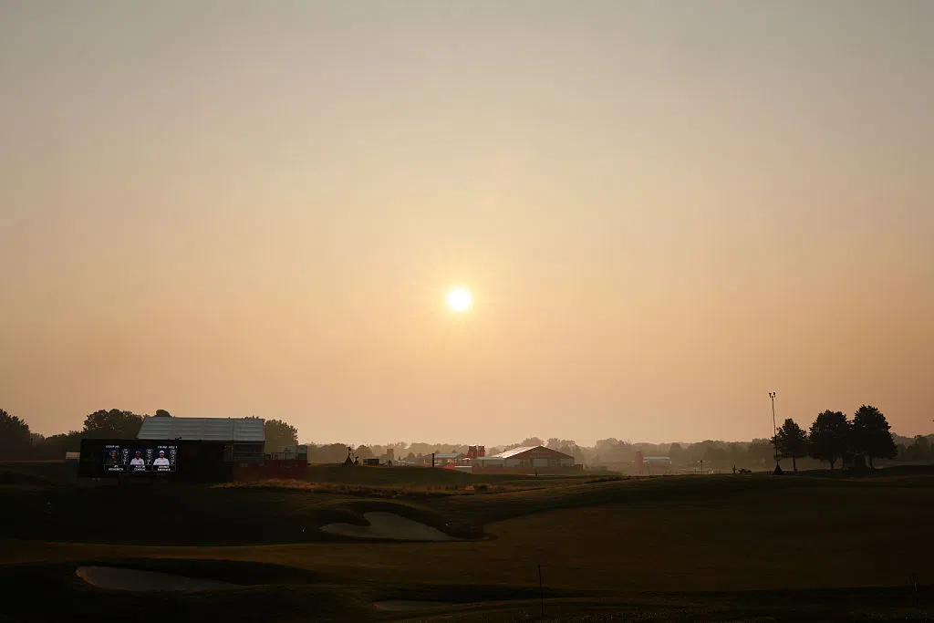 BLAINE, MINNESOTA – JULY 25: A detailed view of the sun covered by smoke from the Canadian wildfires as air quality alerts were issued across Minnesota during the second round of the 3M Open 202...