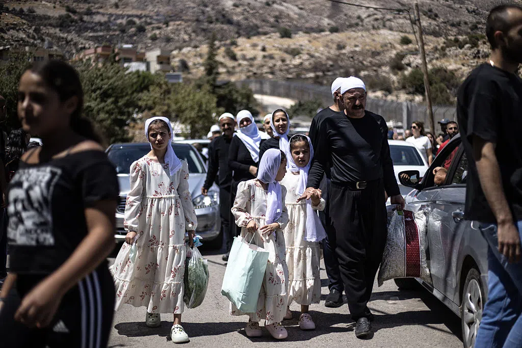 MAJDAL SHAMS – JULY 17: Israeli forces allows Druze visiting relatives in Israel to return to their villages in Syria, at Majdal Shams, located on the border between Israel and Syria on July 17,...