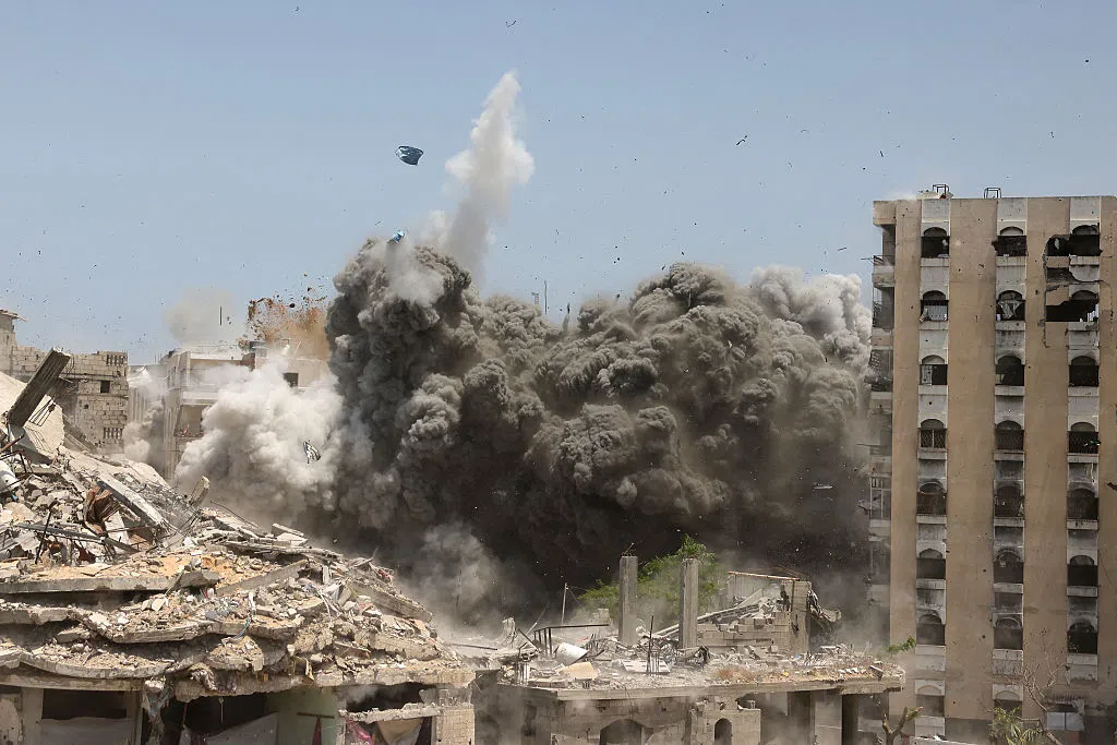 Smoke and debris rise following an Israeli strike on a house west of Jabalia, in the northern Gaza Strip, on June 1, 2025, amid the war between Israel and the Palestinian Hamas militant movement. (Pho...