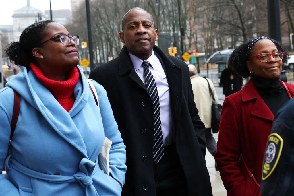 NEW YORK, NEW YORK – DECEMBER 16: Carlos Watson (C) co-founder of Ozy Media, arrives for his sentencing hearing at Brooklyn Federal Court on December 16, 2024 in New York City. In July, after an...